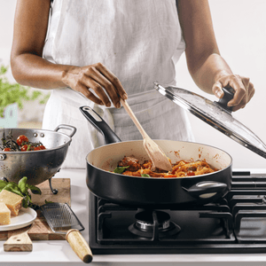 Hos GreenPan har vi fokus på mere end blot det ydre, når vi udvikler vores køkkengrej. Forskellen? Den ser du ikke ved første øjekast, for den gemmer sig i vores keramiske non-stick belægning. Den er fremstillet på basis af naturlige råstoffer, uden skadelige PFAS-kemikalier. Vi udviklede vores PFAS-fri non-stick belægning for 15 år siden som det første brand i verden! Uanset om du vil lave sundere madlavning,