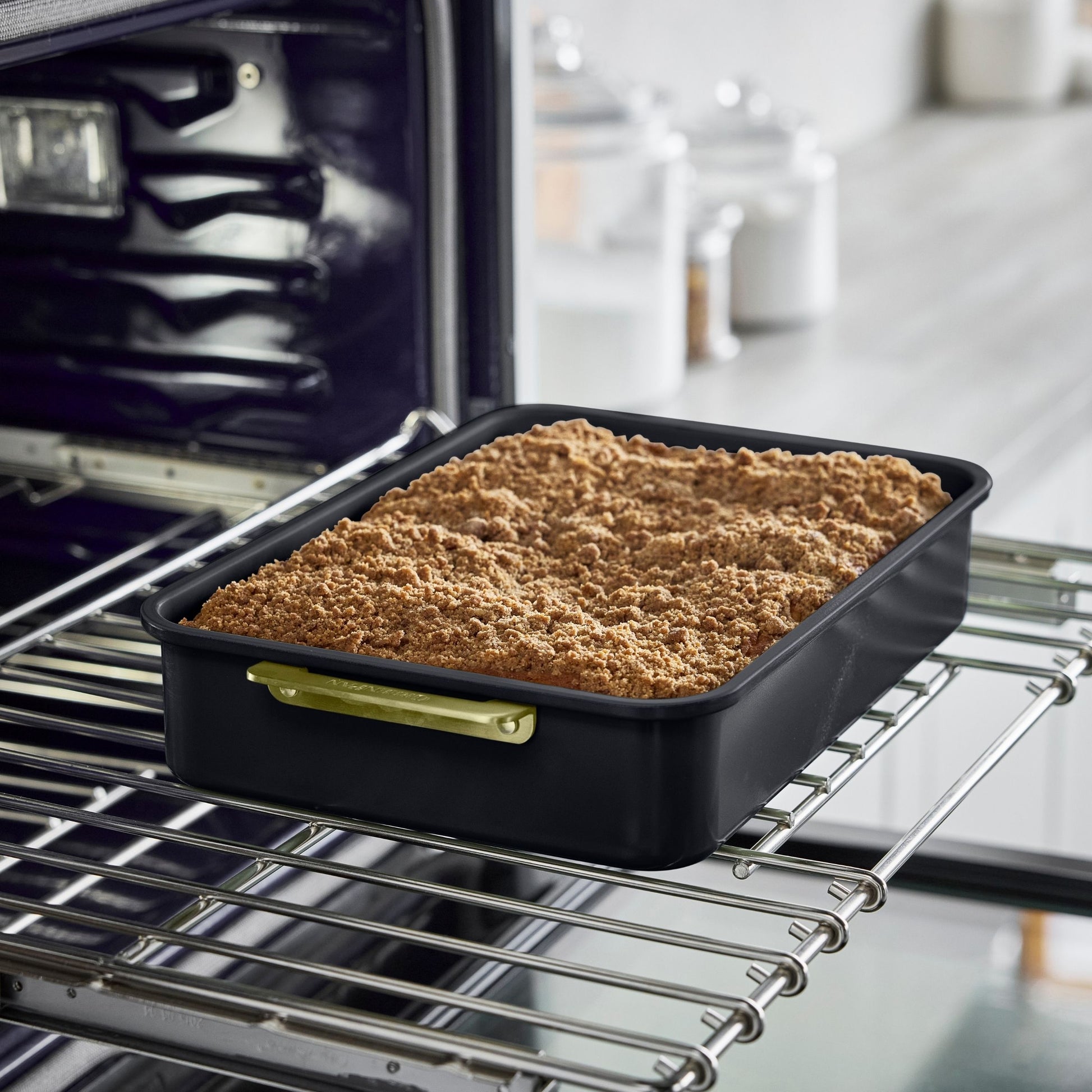 Med guldfarvede, slidstærke håndtag og et robust afkølingsrist er det det ideelle valg for kreative bagere, der ønsker fejlfri resultater og stil i hver eneste portion!