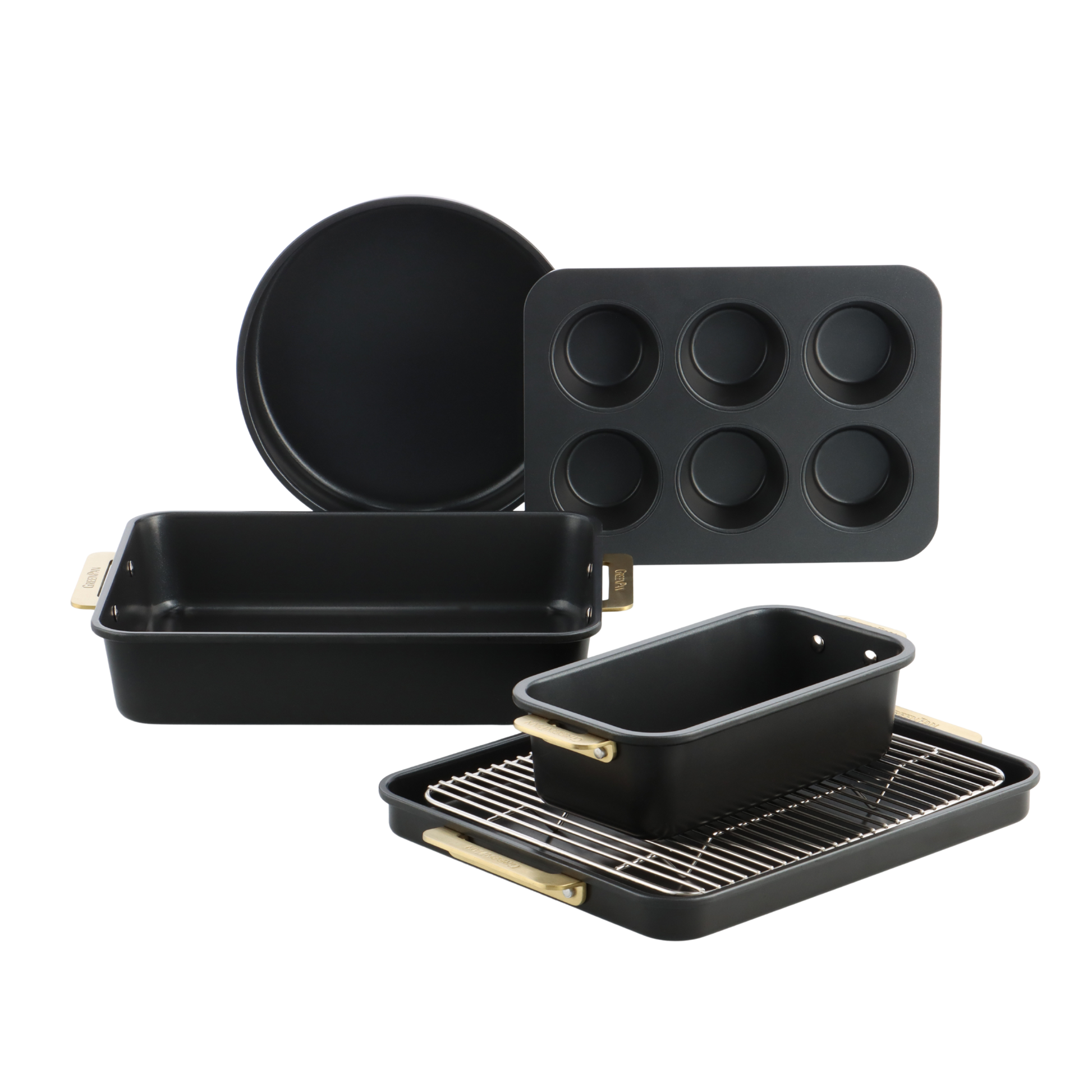 Dette sæt indeholder: - Rund kageform - 6-kops muffinsform - Brødform - Kageplade - Rektangulær kageform - Afkølingsrist